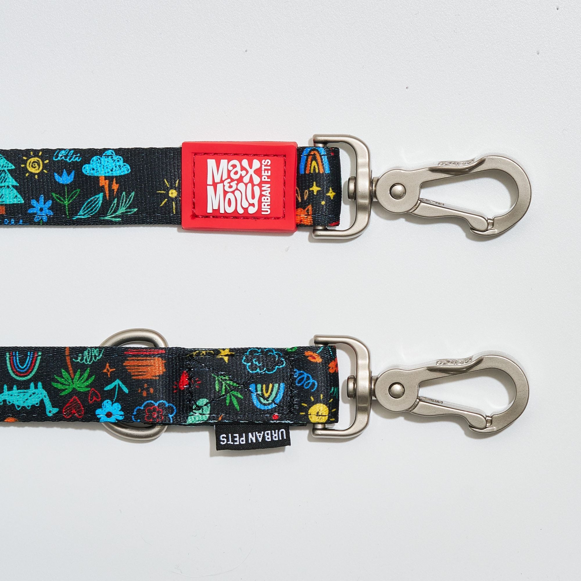 • 3 stabile gebürstete Ringe zur variablen Regulierung der Leinenlänge
