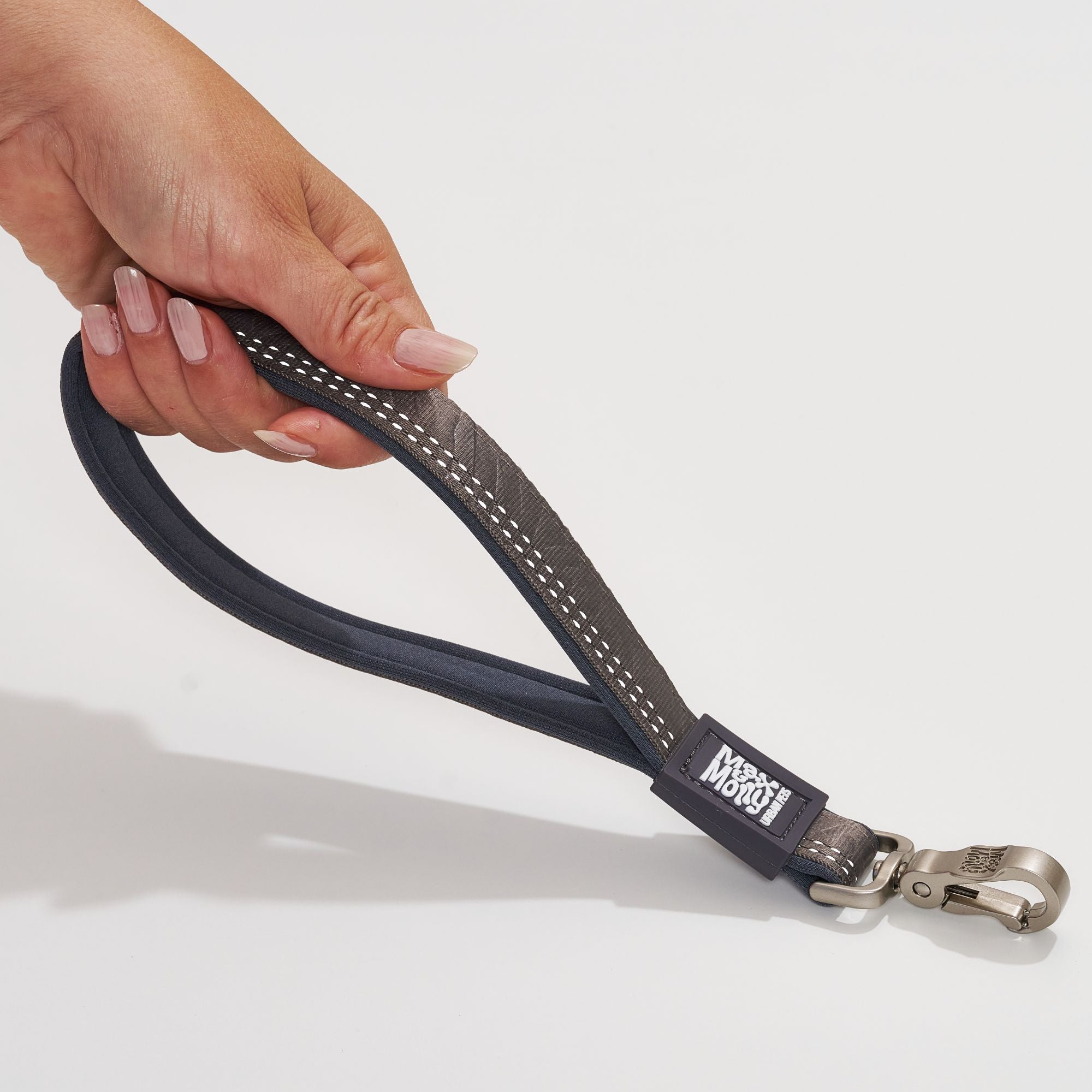 The Handle Leash is 30 cm long and padded with soft neoprene for a comfortable grip. A reflective seam increases visibility in low-light conditions, adding an extra layer of safety during walks.